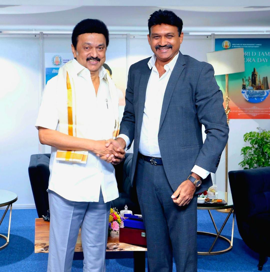 அயலக தமிழர் மாநாடு இன்று சென்னையில் இடம்பெற்ற நிலையில், இலங்கை தொழிலாளர் காங்கிரசின் தலைவர் செந்தில் தொண்டமான், தமிழக முதல்வர் மு.க ஸ்டாலினை மரியாதை நிமித்தமாக சந்தித்து கலந்துரையாடல் மேற்கொண்டார்.