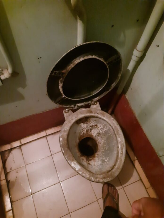 கீழே காணப்படும் புகைப்படம் கொழும்பு – மட்டக்களப்பு நோக்கி பயணிக்கும் ‘பாடுமீன்’ ரயிலின் முதல் வகுப்பு பெட்டியில் உள்ள பயணிகள் பொது மலசலகூடமாகும்.