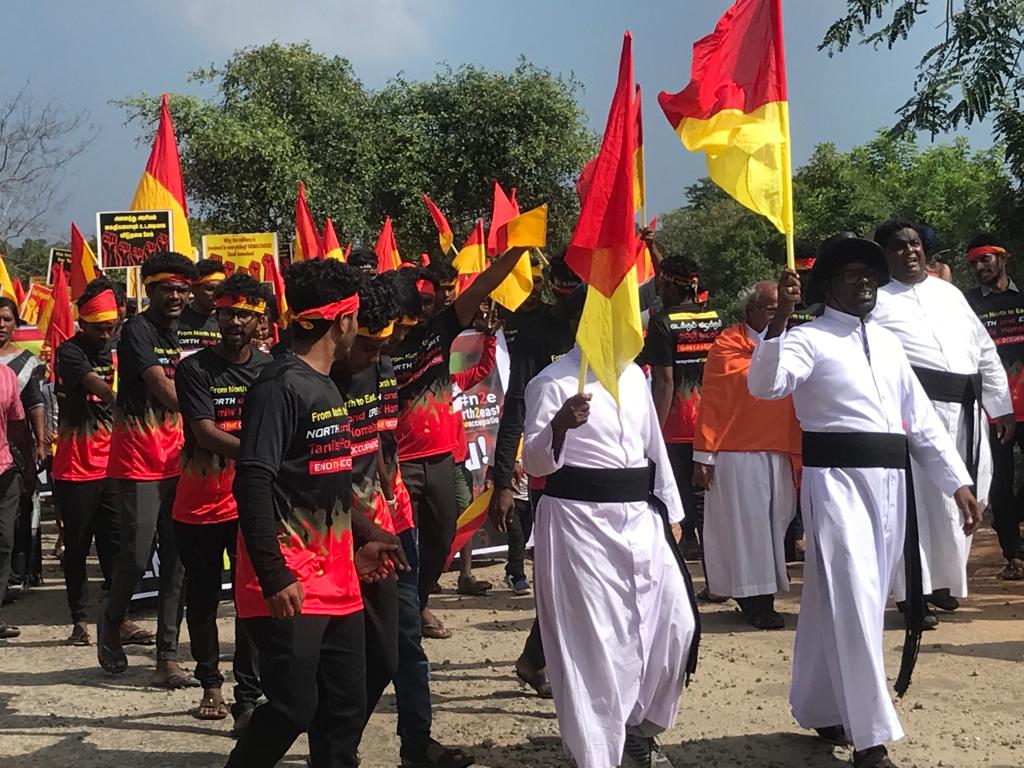 இதன்போது, தமிழர் தேசம் மீதான ஆக்கிரமிப்பை நிறுத்து எனும் கோசங்களுடன் பல்கலை மாணவர்கள், சமூக அமைப்பினர் மற்றும் காணாமல் ஆக்கப்பட்டோரின் உறவுகள் எனப் பலர் பேரணியாக சென்று கொண்டிருக்கின்றனர்.