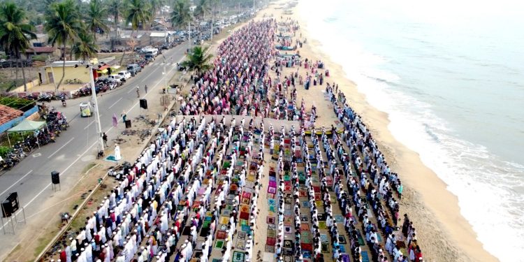 புனித ஈதுல் பித்ர் நோன்புப் பெருநாள் தொழுகையும் குத்பா பிரசங்கமும் அம்பாறை மாவட்டம் மருதமுனை கடற்கரை திறந்த வெளியில் இன்று நடைபெற்றது. இதன் போது மருதமுனை தாறுல் ஹதா மகளிர் இஸ்லாமிய அரபுக் கல்லூரியின் பணிப்பாளர் கலாநிதி எம்.எல்.எம்.முபாறக் மதனி தொழுகை நடாத்தி பிரசங்கமும் நிகழ்த்தினார். இதில் ஆண்களும் பெண்களும் கலந்து கொண்டனர்.