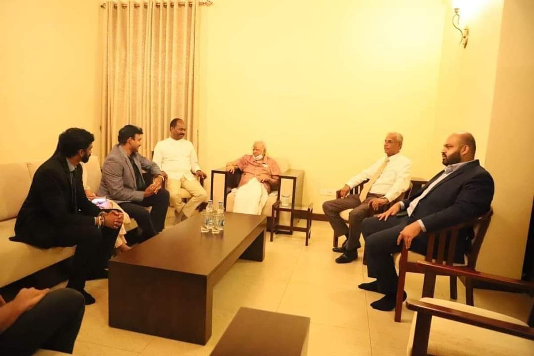 கிழக்கு மாகாண ஆளுநருமான செந்தில் தொண்டமான், தோட்ட உட்கட்டமைப்பு, நீர்வழங்கல் வசதிகள் அமைச்சர் ஜீவன் தொண்டமான் மற்றும் பாராளுமன்ற உறுப்பினர் ராமேஸ்வரன் ஆகியோர் தமிழ் தேசியக் கூட்டமைப்பின் தலைவரும் பாராளுமன்ற உறுப்பினருமான சம்பந்தனை அவரது இல்லத்தில் சந்தித்து நலம் விசாரித்தனர்.