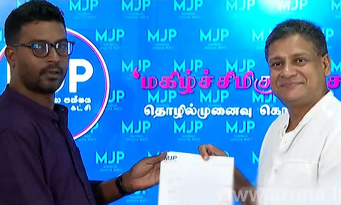 மவ்பிம ஜனதா கட்சியின் யாழ். மாவட்ட பிரதான அமைப்பாளராக அருண் சித்தார்த் நியமிக்கப்பட்டுள்ளார்.