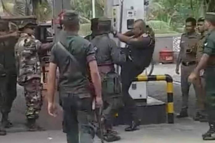 எரிபொருள் வரிசையில் நின்றிருந்த இளைஞன் ஒருவரை இராணுவ அதிகாரி கொடூரமாக தாக்கும் வீடியோ சமூக வலைதளங்களில் பகிரப்பட்டு வருகிறது.
