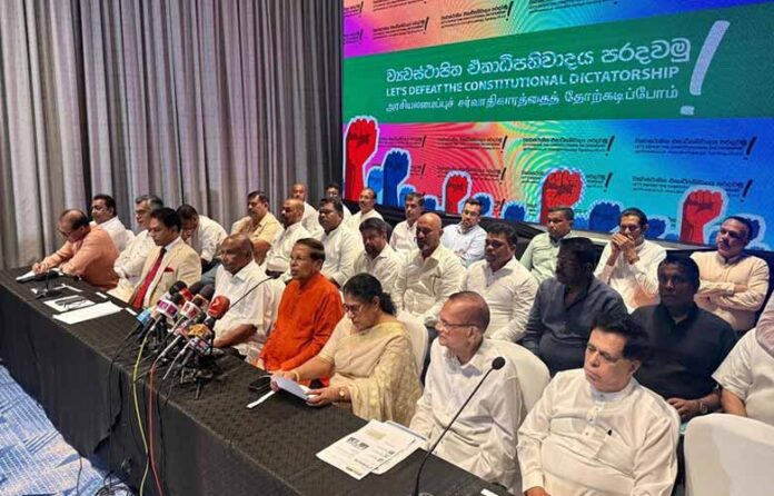 “அரசியலமைப்பு சர்வாதிகாரத்தை தோற்கடிப்போம்!” என்ற தொனிப்பொருளில் ஊடகவியலாளர் சந்திப்பு நடைபெற்றது. மற்றும் கலந்து கொண்ட பிரதிநிதிகள் நாட்டின் ஜனநாயகம் அச்சுறுத்தலுக்கு உள்ளாகியுள்ளதாக தெரிவித்தனர்.
