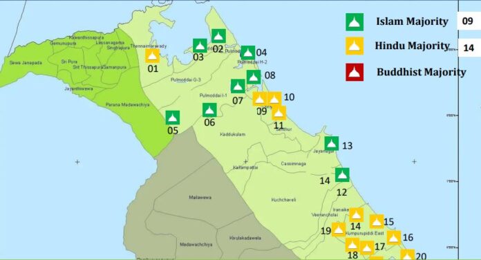 கீழே தரப்பட்டுள்ள புள்ளிவிபரத்தின் அடிப்படையில் 10 கிராம சேவகர் பிரிவில் முஸ்லிம்கள் அதிகமாக வாழும் பகுதிகளில் 09 பௌத்த விகாரைகளும் தமிழர்கள் பெரும்பான்மையாக வாழும் பகுதிகளில் 14 பௌத்த விகாரைகளும் புதிதாக அமைக்கப்படுகின்றன.