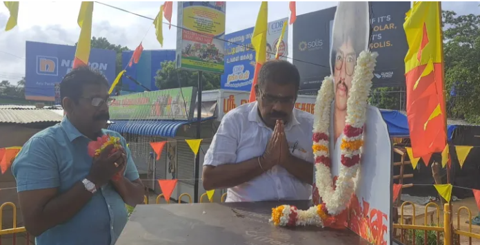 ஐனாதிபதி தேர்தலில் தமிழ் தேசிய பொதுக் கட்டமைப்பின் சார்பில் போட்டியிடும் தமிழ் பொது வேட்பாளர் பா.அரியநேத்திரன் இன்று தியாக தீபம் திலீபனுக்கு அஞ்சலி செலுத்தியுள்ளார்.