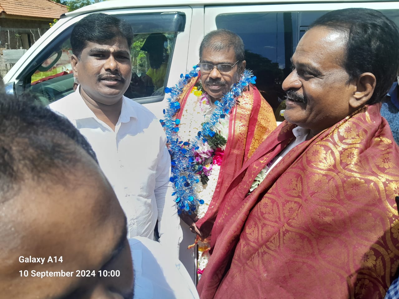 தாயக செயலணியின் அம்பாறை மாவட்ட இணைப்பாளரும் இலங்கைத் தமிழரசுக் கட்சியின் காரைதீவு பிரதேச தலைவருமான முன்னாள் தவிசாளர் கலாநிதி கிருஷ்ணபிள்ளை ஜெயசிறில் பொன்னாடை போர்த்தி வரவேற்றார் .