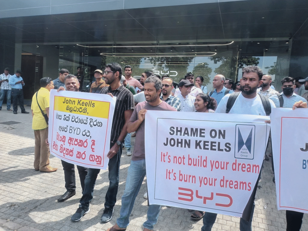 கொழும்பில் உள்ள ஜான் கீல்ஸ் சிஜி ஆட்டோ பிரைவேட் லிமிடெட்டின் BYD வாகன ஷோரூம் முன் நேற்று (04) ஒரு போராட்டம் நடைபெற்றது.