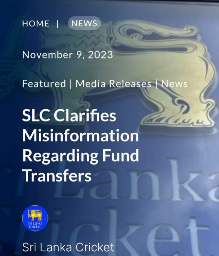 எனவே, “ஶ்ரீலங்கா கிரிக்கெட் நிறுவனத்தின் கணக்குகளில் இருந்து பணத்தை வௌியில் எடுக்கப் பார்க்கிறார்கள்…” என்று கூறுவது தவறான தகவல் என ஶ்ரீலங்கா கிரிக்கெட் நிறுவனம் விடுத்துள்ள அறிக்கையில் தெளிவுபடுத்தப்பட்டுள்ளது.