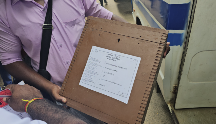 யாழ் மாவட்டத்திற்கான வாக்குப் பெட்டிகள் அனைத்தும், யாழ். மத்திய கல்லூரியில் அமைக்கப்பட்டுள்ள வாக்கெண்ணும் நிலையத்தில் இருந்து வாக்களிப்பு நிலையங்களுக்கு கொண்டு செல்லும் பணிகள் ஆரம்பமாகியுள்ளன.