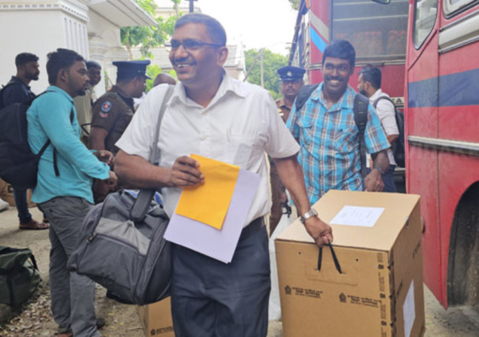 வாக்குப் பெட்டிகள் நேற்றுமுன்தினம் செவ்வாய்க்கிழமை மற்றும் புதன்கிழமை மாவட்டத் தேர்தல் அலுவலகங்களில் இருந்து உரிய வாக்குச் சாவடிகளுக்கு பகிர்ந்தளிக்கப்பட்டன. பலத்த பாதுகாப்புடனேயே வாக்குப் பெட்டிகள் உரிய வாக்குச் சாவடிகளுக்கு கொண்டுசெல்லப்பட்டன.
