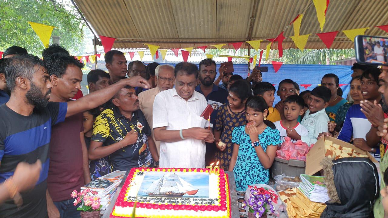 இதனையடுத்து குறித்த புகைப்படத்தை மறைத்துவிட்டு பிறந்தநாள் கொண்டாட்டம் நடத்தப்பட்டது.