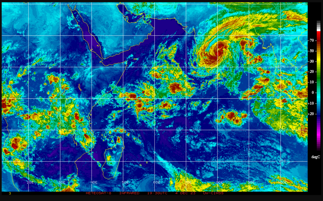MICHAUNG சூறாவளி நேற்று (04) இரவு 11.30 மணியளவில் மேற்கு-மத்திய வங்காள விரிகுடா கடல் பகுதியில் 14.5 வடக்கு அட்சரேகை மற்றும் 80.3 கிழக்கு தீர்க்கரேகைக்கு அருகில் யாழ்ப்பாணத்தில் இருந்து கி.மீ. வடக்கில் சுமார் 520 இருந்தது.