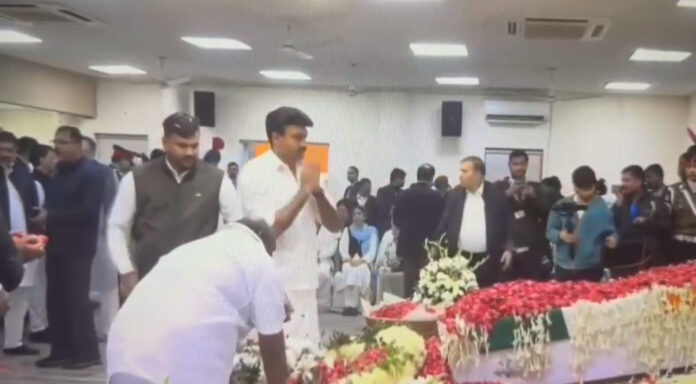 இந்தியாவின் முன்னாள் பிரதமர் மன்மோகன் சிங்கின் பூதவுடலுக்கு இலங்கை தொழிலாளர் காங்கிரசின் தலைவர் செந்தில் தொண்டமான் மலர் வளையம் வைத்து மரியாதை செலுத்தினார்.