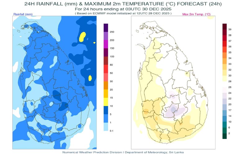வட மாகாணத்திலும் கண்டி, அனுராதபுரம் மற்றும் திருகோணமலை மாவட்டங்களிலும் பல தடவைகள் மழை பெய்யக்கூடும்.