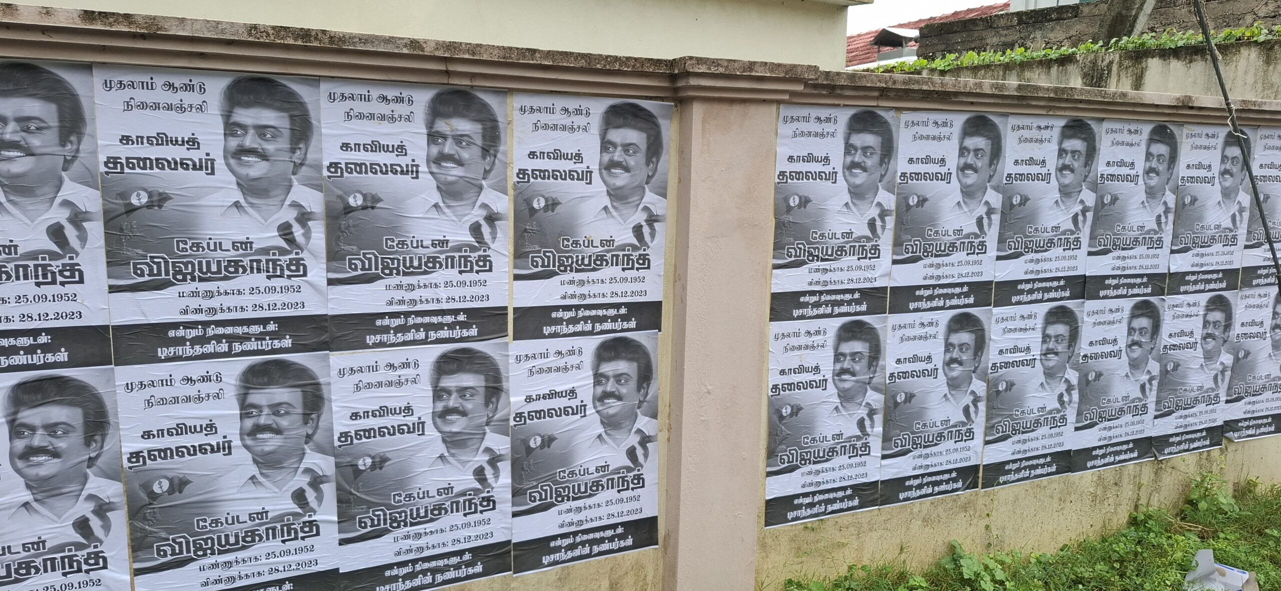 மறைந்த நடிகர் கப்டன் விஜயகாந்த்தின் ஓராண்டு நினைவை முன்னிட்டு யாழ்ப்பாணம் நகரின் பல பகுதிகளிலும் சுவரொட்டிகள் ஒட்டப்பட்டுள்ளன.