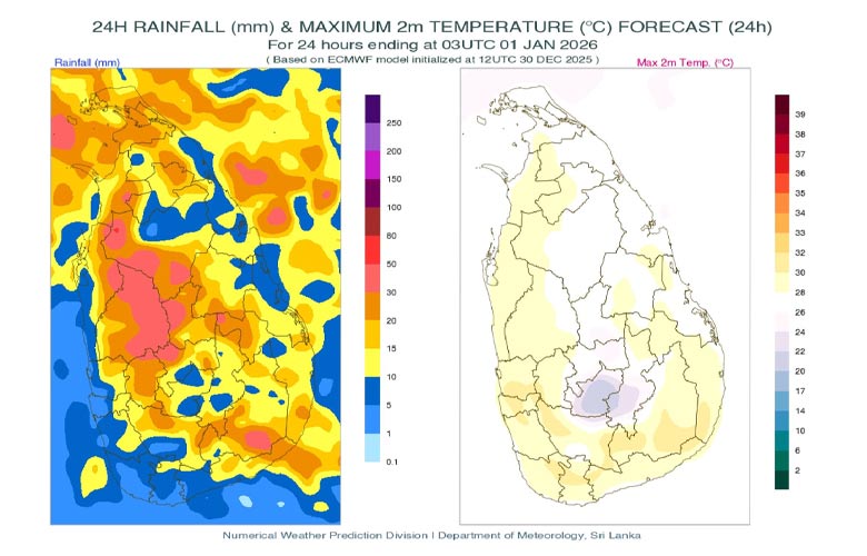 இன்று (டிசம்பர் 31) வடக்கு, கிழக்கு, மத்திய, வட மத்திய, ஊவா மற்றும் வடமேற்கு மாகாணங்களில் இடையிடையே மழை அல்லது இடியுடன் கூடிய மழை பெய்யக்கூடும் என வானிலை ஆய்வு திணைக்களம் அறிவித்துள்ளது.